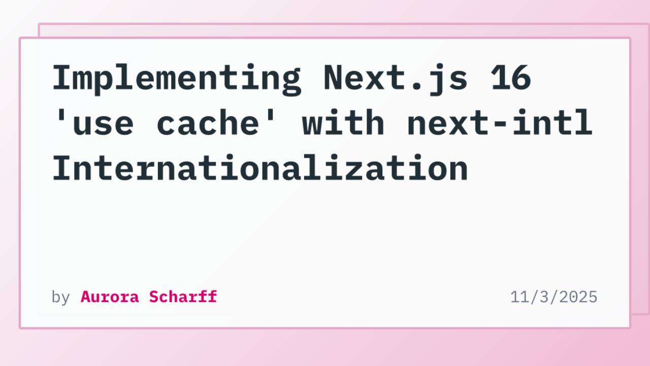 Implementing Next.js 16 'use cache' with next-intl Internationalization