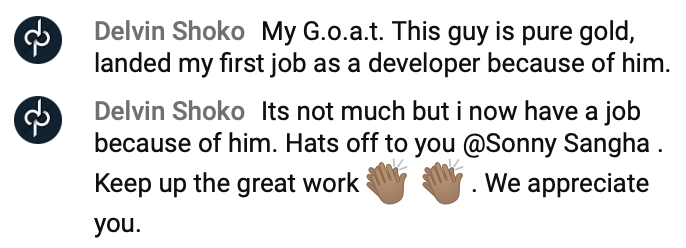Delvin Shoko landing his First Dev Job with the help of the PAPAFAM!